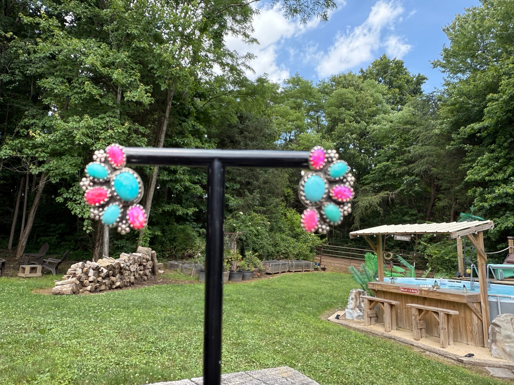 Studs- turq & pink opal